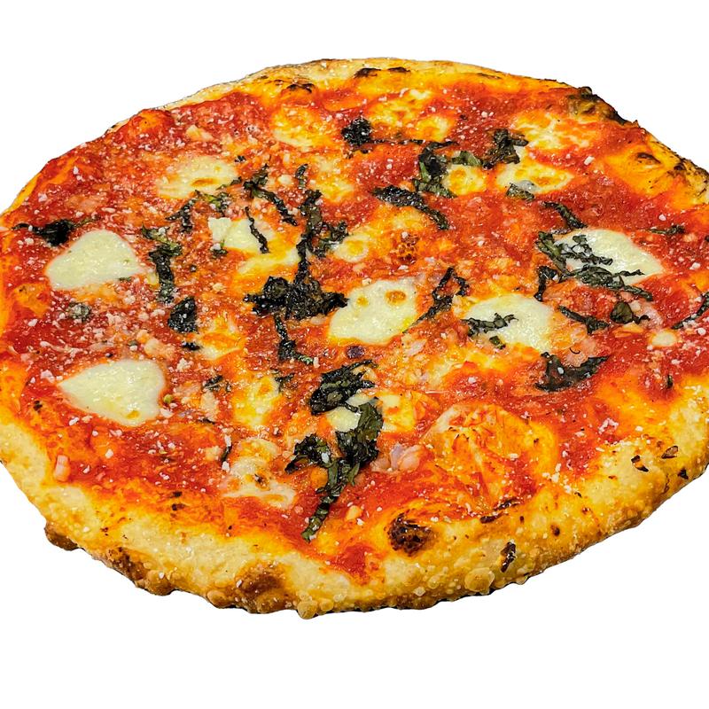 Fresh Dough, Blended Tomato Sauce. Extra Virgin Olive Oil, Garlic, Shallots, Basil & Pecorino Romano Cheese