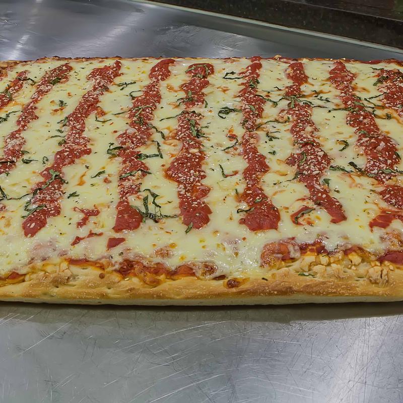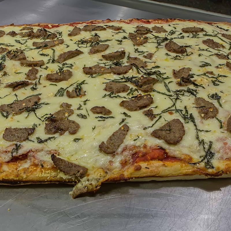 Grandpa's Fresh Dough, Tomato Sauce, Pepperoni, Sausage, Fresh Sweet Peppers, Extra-Virgin-Olive Oil, Garlic, Shallots, Basil, Pecorino Romano Cheese and Mozzarella Cheese 24" Sheet (32 slices)...